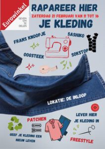 18 februari 2026 door Eef Goes Kledingreparatiedag 21 februari Op 21 februari aanstaande organiseert de Eurowinkel een kleding-reparatiedag. Welkom! (NB Let op de locatie: de Inloop, naast de Eurowinkel.)